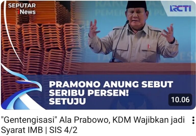 Betapa tidak, setelah suksesnya program MBG (Makan Bergizi Gratis) untuk pelajar, kini mencanangkan program gerakan Gentengisasi yaitu gerakan untuk masyarkat menggunakan genteng untuk atap bangunan, baik untuk rumah, ruko hingga kios di Indonesia yang disambut antusias oleh gubernur Jakarta dan KDM (Kang Dedy Mulyadi) Geburnur Jawa Barat. Bahkan KDM sendiri mensyaratkan genteng sebagai komponen syarat untuk mendapatkan IMB (Izin Mendirikan Bangunan).